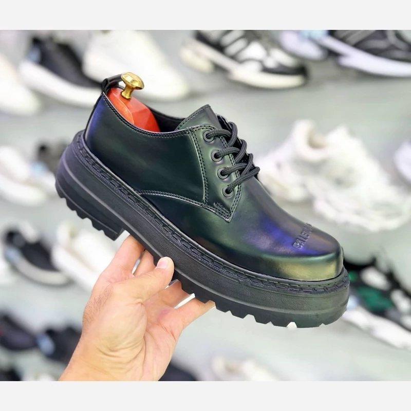 کفش مردانه لوفر بالنسیاگاچرم ورنی طبیعی زیره تی پی یو طبی بسیار سبک آستر و کفی چرم ترک طبی ضد بودوردوخت