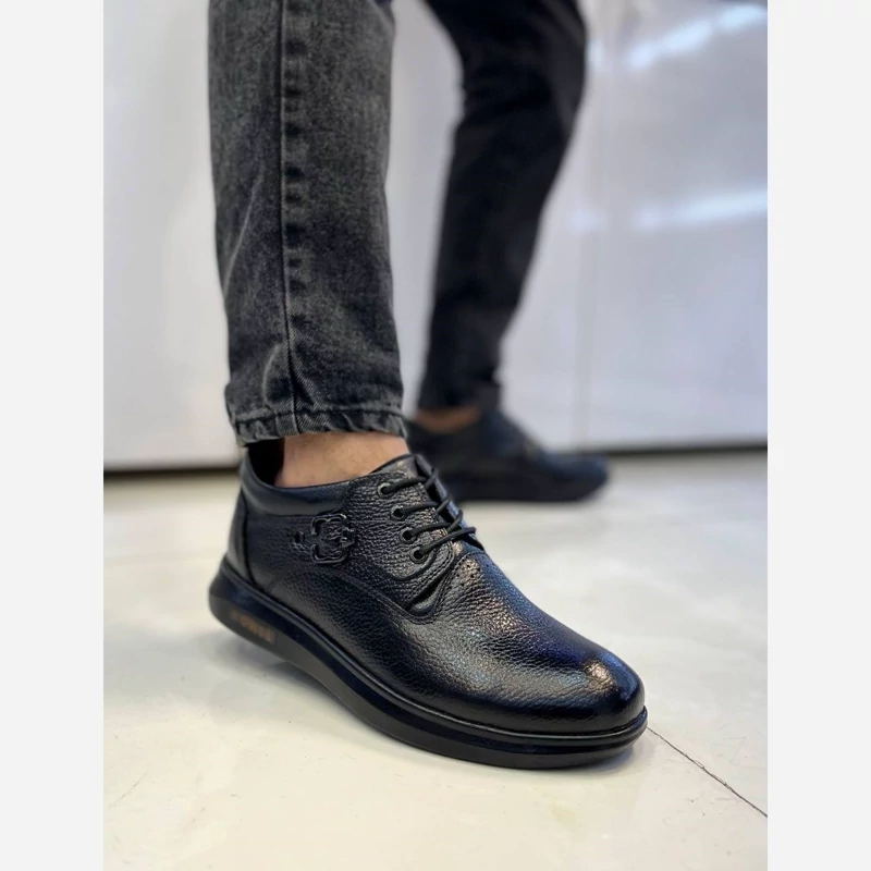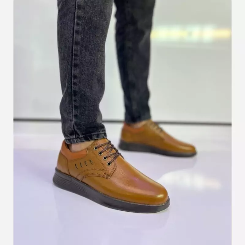 کفش فوریس چرم طبیعی مردانه دردورنگ قهوه ای ومشکیپی یو طبی آستر وکفی کتان راحت وخوش پا
