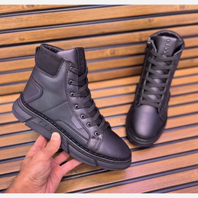 نیم بوت کراش مردانه بغل زیپ بندی چرم ماکرو زیره پی یو لاستیک طبی کفی مموری طبی بسیار سبک و راحت دور دوخت و کف
