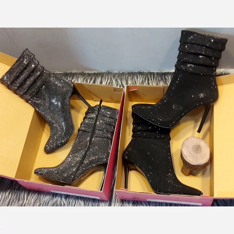 ⚜️هوالرزاق⚜️ 💎مدل: بوت نگینی بغل زیپ پاشنه 9 سانت ضد اب زیره میکرولایت استپ دار استر پفک و کرک کف بندی طبی غالب ترک شیک و راحت ………………………………………….. 🎨رنگبندی:مشکی نقره ای 📏سایز👇 36📍37📍38📍39📍40📍 41 …………………………………………… ……………………………………………