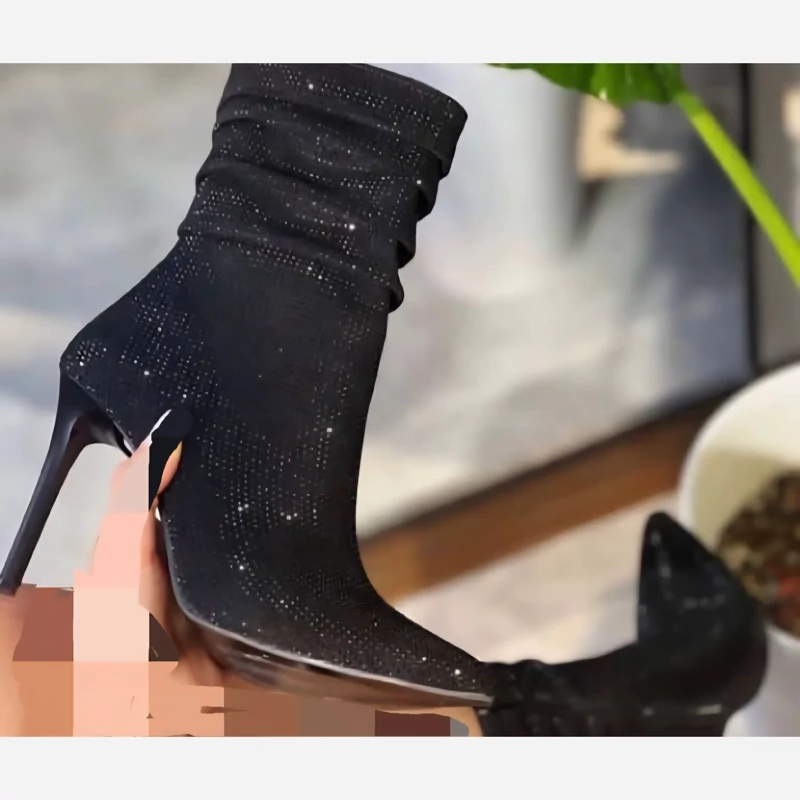 بوت نگینی بغل زیپ پاشنه 9 سانت ضد اب زیره میکرولایت استپ دار استر پفک و کرک کف بندی طبی