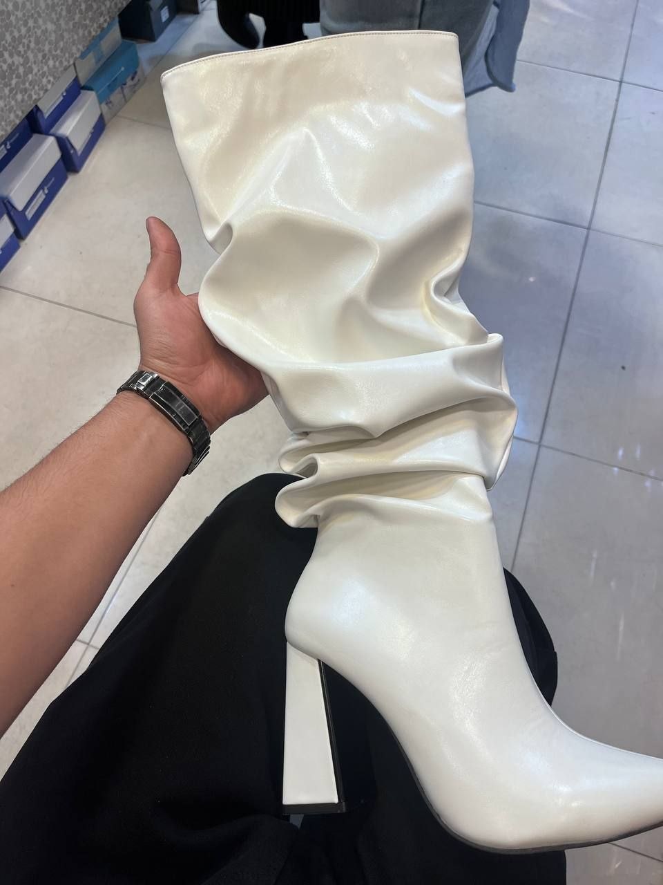 چکمه جدید سایزبندی 36 تا41 رنگبندی مشکی سفید کرم زرشکی و قهوه ای ترند این روزا اندازه پاشنه7 سانت زیره میکرولایت