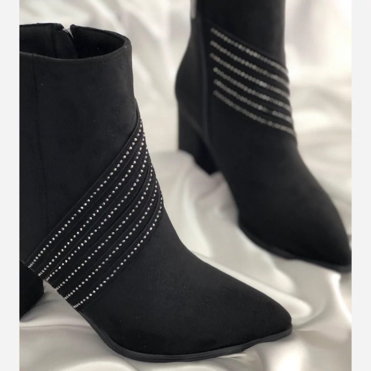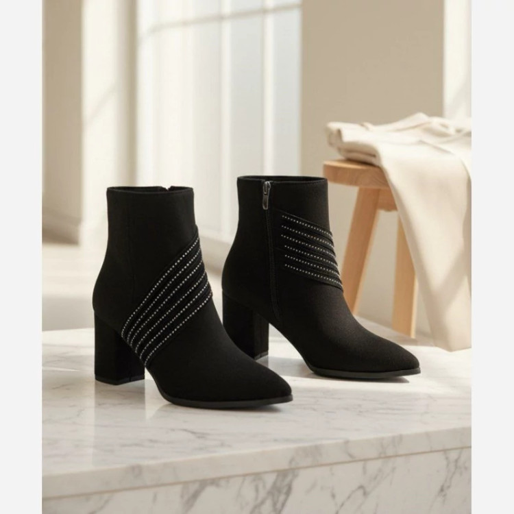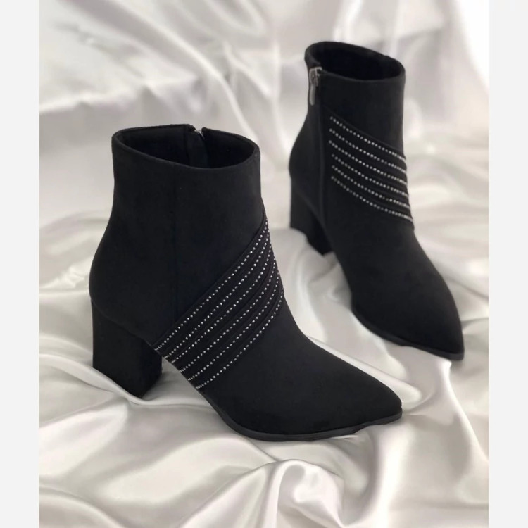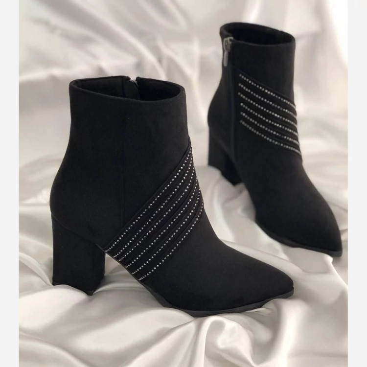 بوت نگینی جدیدپاشنه 5 سانتی رویه کار میکرو سوییت ترک آستر کبریتی ضد آب زیره یخ شکن طراحی روز ژورنال ترک