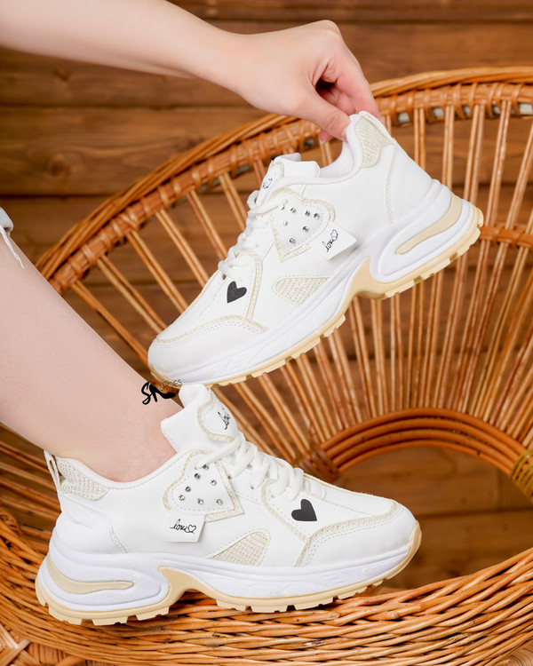 کتانی قلبی ✔️ارسال رایگان زیره پیو ✔️ کیفیت با ضمانت ✔️ سبک و راحت 📏 سایزهای موجود : 37, 38, 39, 40 🌈 رنگبندی : سفید کرم, مشکی کرم, سفید مشکی