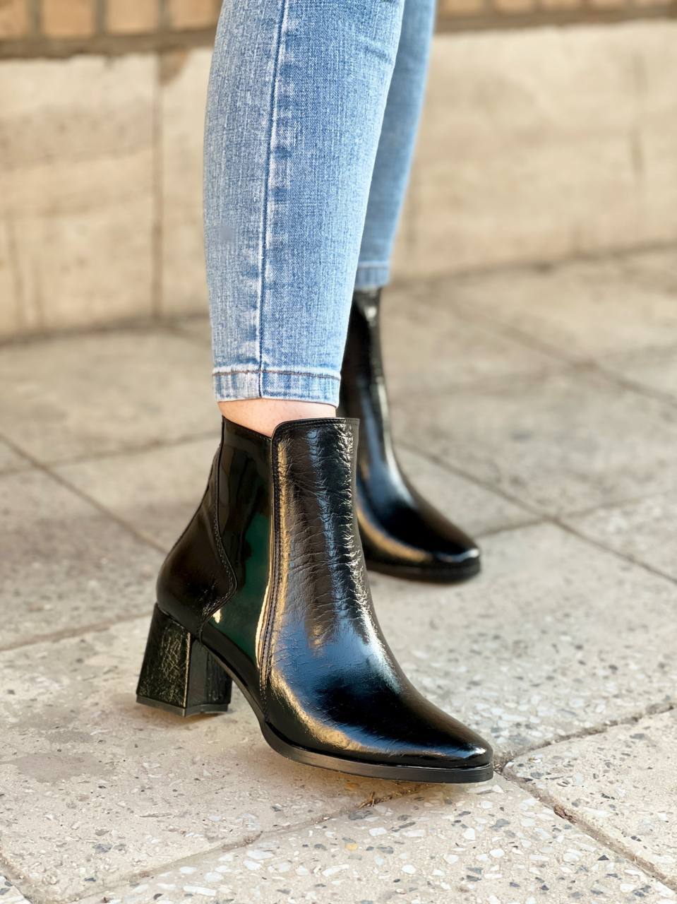 نیم بوت جدید 💥 کد 6153 🔹 سایز 37_40 ✅ رویه ورنی ✅ آستر ترک ✅ ۵ سانت ارسال رایگان