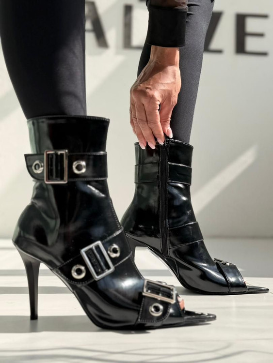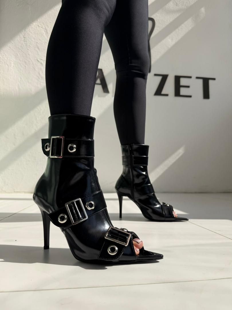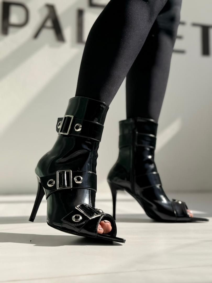 💎مدل: نیم بوت مجلسی جلو باز پاشنه نازک 9 جنس چرم استرج بغل زیپ سگک دکوری با قالب ترک راحت و شیک با ضمانت