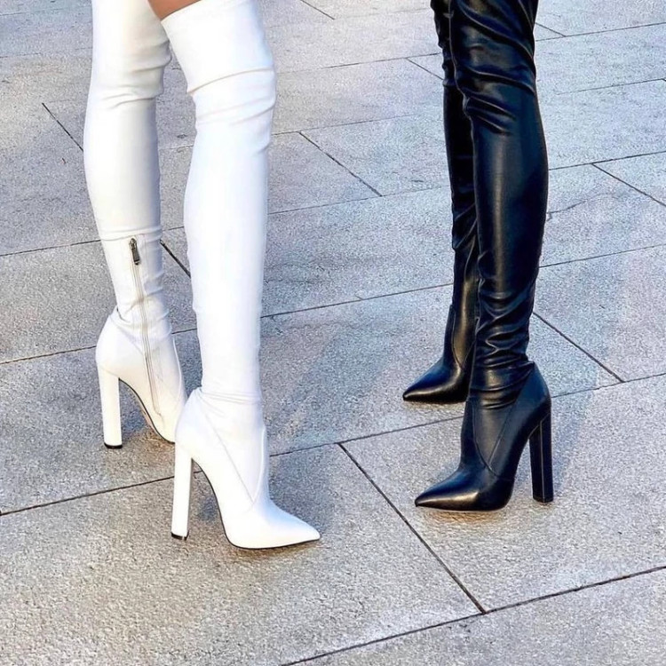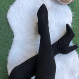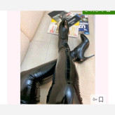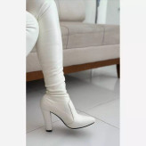 بوت جورابی بلندچرم مشکی وسفید وسوئیت مشکی وورنی مشکی وقرمز پاشنه ده و5 پاشنه میخی وپهن