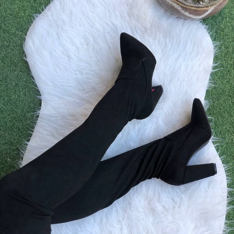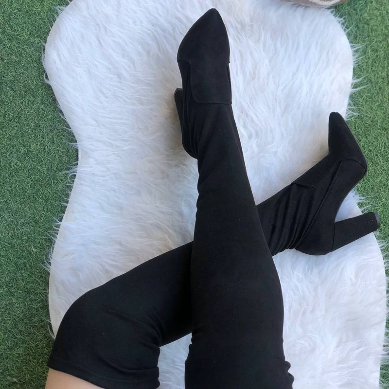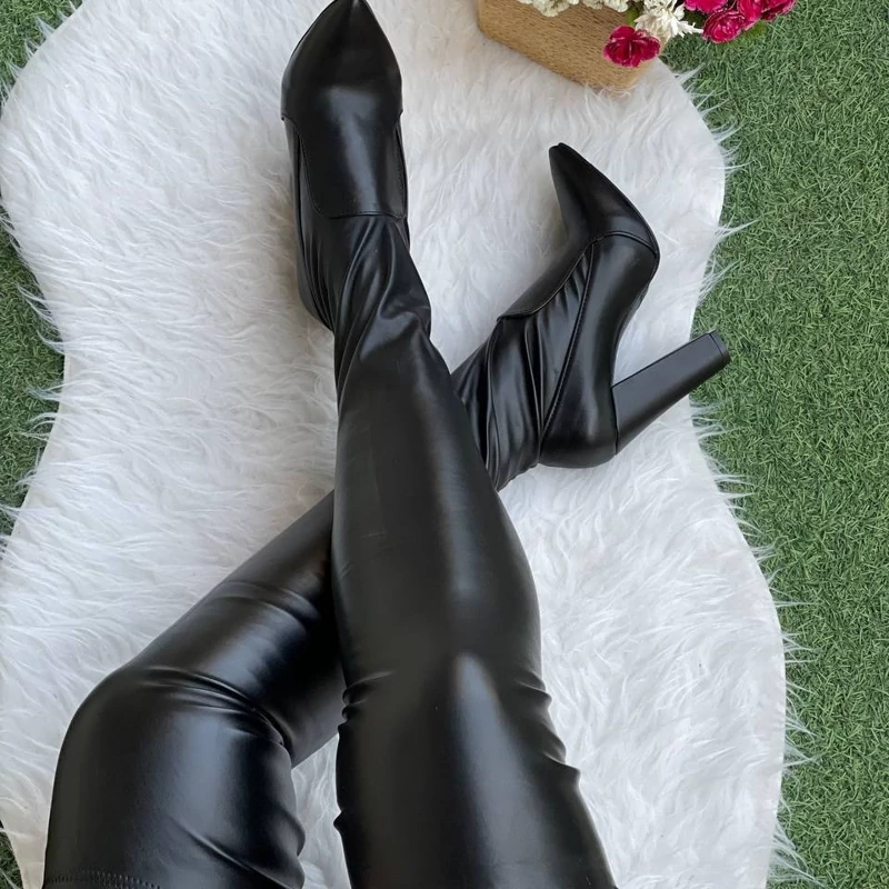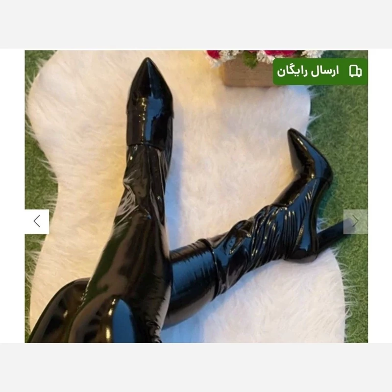 بوت جورابی بلندچرم مشکی وسفید وسوئیت مشکی وورنی مشکی وقرمز پاشنه ده و5 پاشنه میخی وپهن