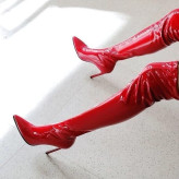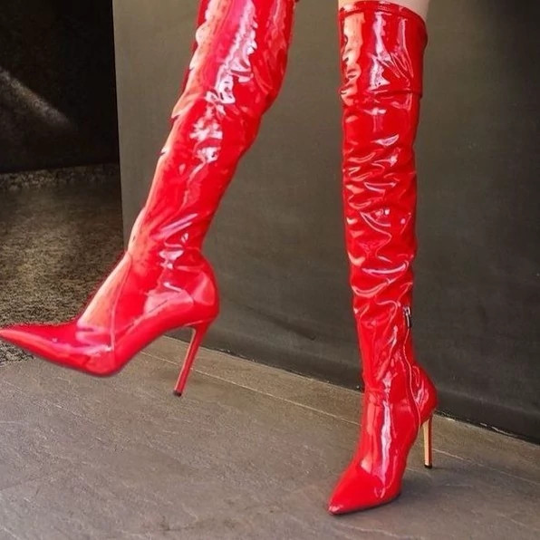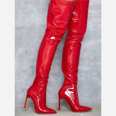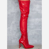 بوت ورنی جورابی قرمز جدید بالا زانو کار پرفروش تاسایز41 ارتفاع تابالای زانو