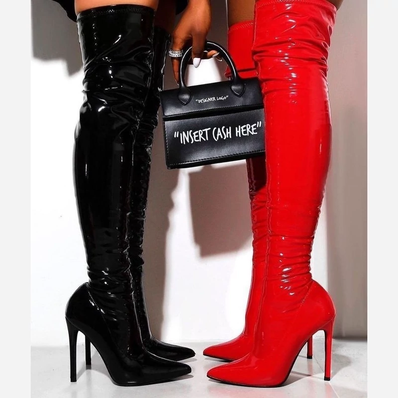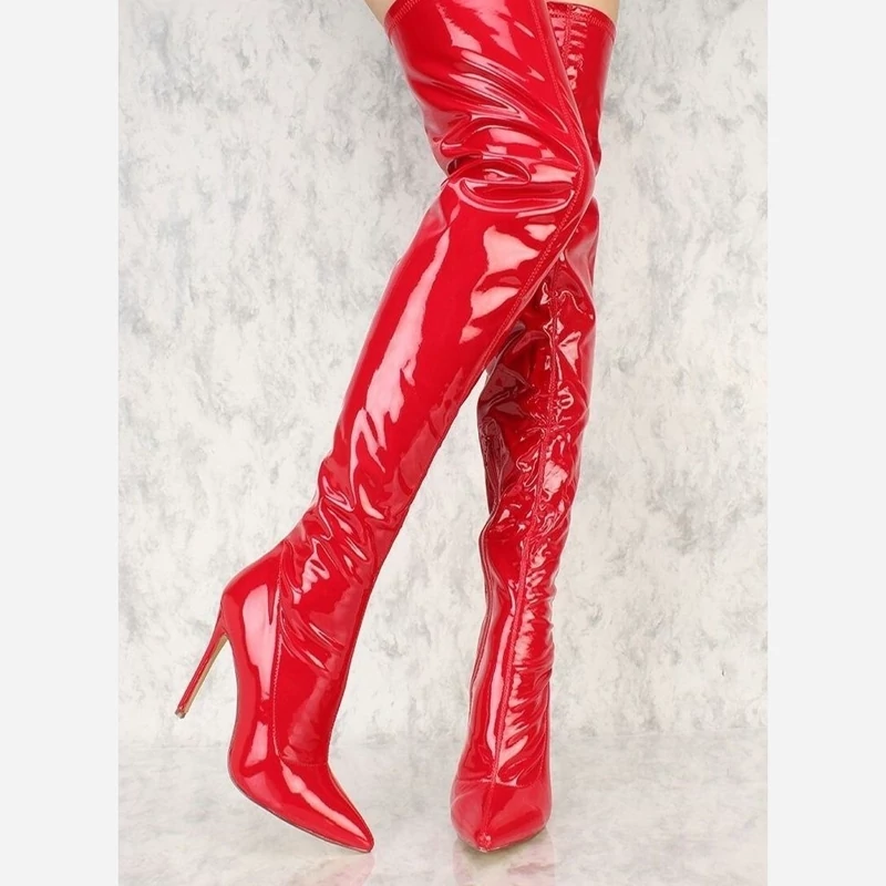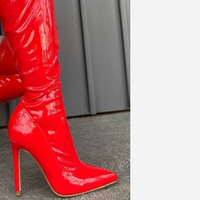 بوت ورنی جورابی قرمز جدید بالا زانو کار پرفروش تاسایز41 ارتفاع تابالای زانو