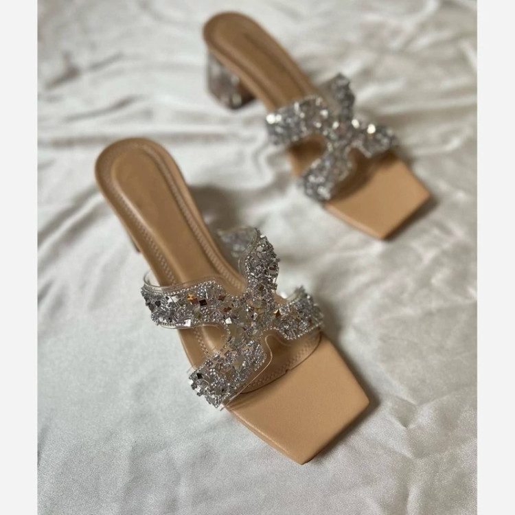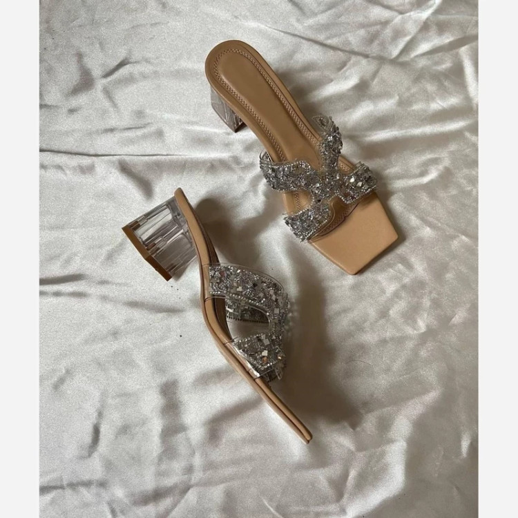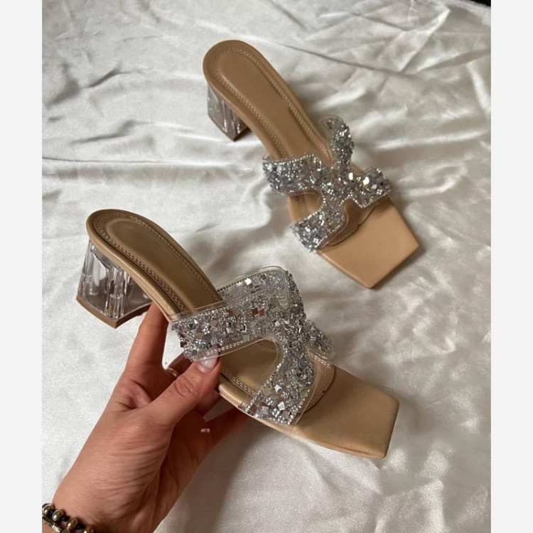صندل مدل جدید طلقی نگینی پاشنه 5سانت شیشه ای کیفیت عالی