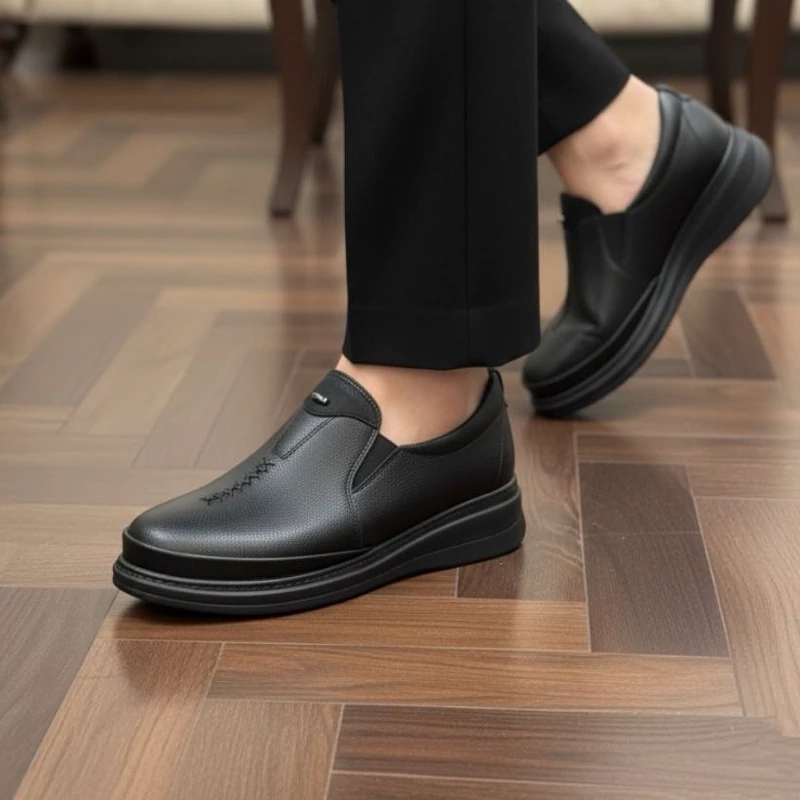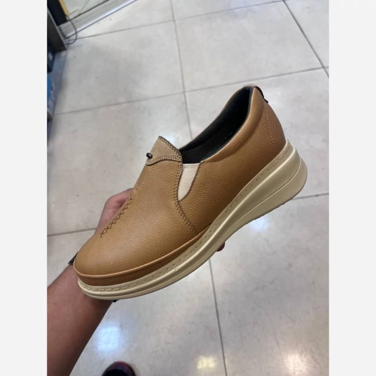 کفش پدخار پاشنه رنگبندیمشکی کرم عسلی جنس رویه چرم کاپرا زیره پی یو(بیتا پاسارگاد) دور دوخت داری کفی طبی پی یو