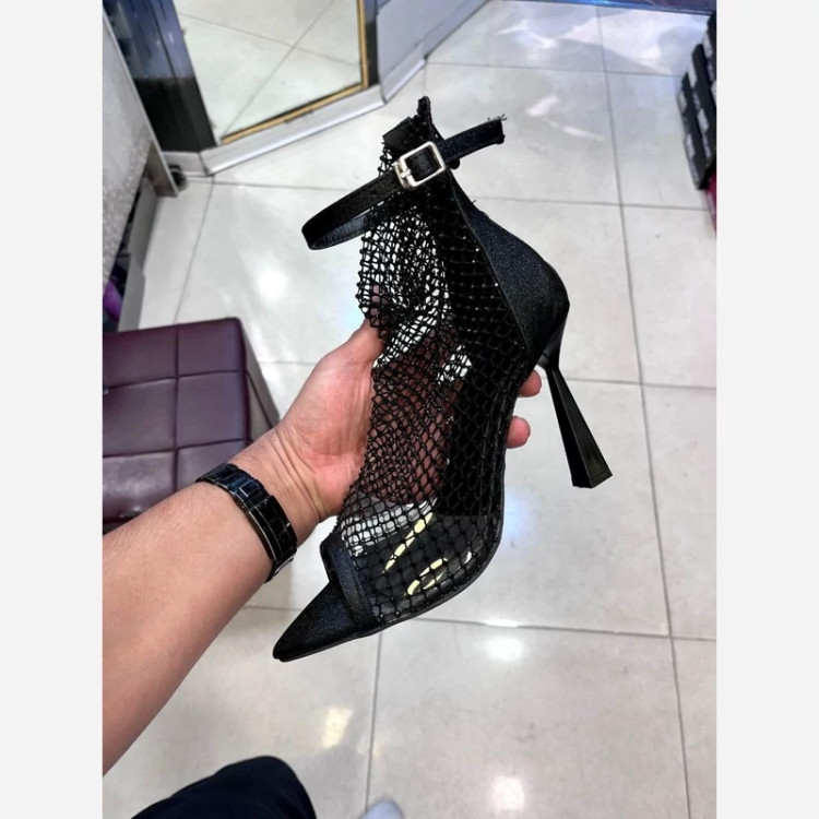 کفش توری مجلسی ترکیبی سایزبندی36 تا41 رنگبندیمشکی با نگین هفت رنک مشکی با نگین مشکی انداره پاشنه7 سانت زیره میکرو