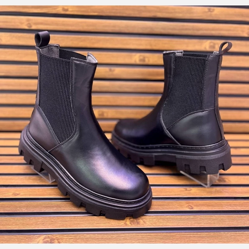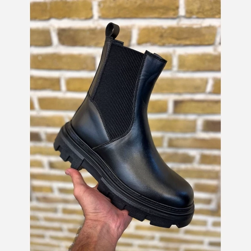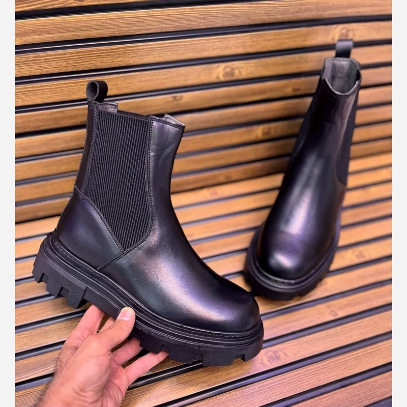 بوت دو طرف کش (کبریتی) زارا چرم ماکرو طبیعی ضد تَرَک و پوسته شدن زیره تی پی یو فنر دار طبی اصل آستر سوئیت طبیعی ضد بو و تعریق کفی طبی ساتل با روکش چرم طبیعی دور دوخت شرکتی و پرس پی یو سایز 40 تا 44