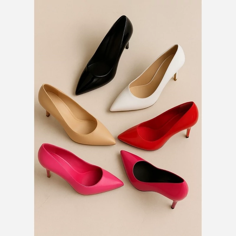 کفش مجلسی رنگبندی جنس مات مشکی سفید کرم قرمز سرخ آبی رنگبندی جنس ورنی مشکی قرمز کرم سایزبندی36 تا40 اندازه پاشنه9 سانت