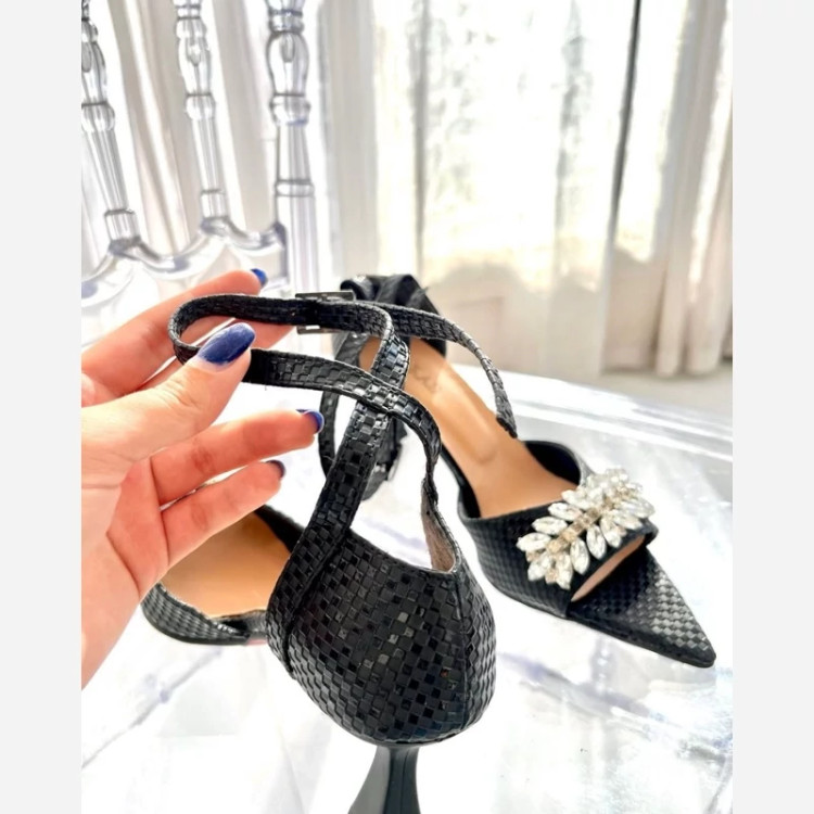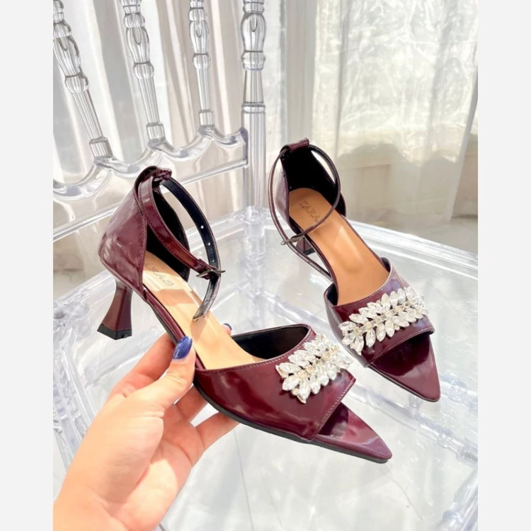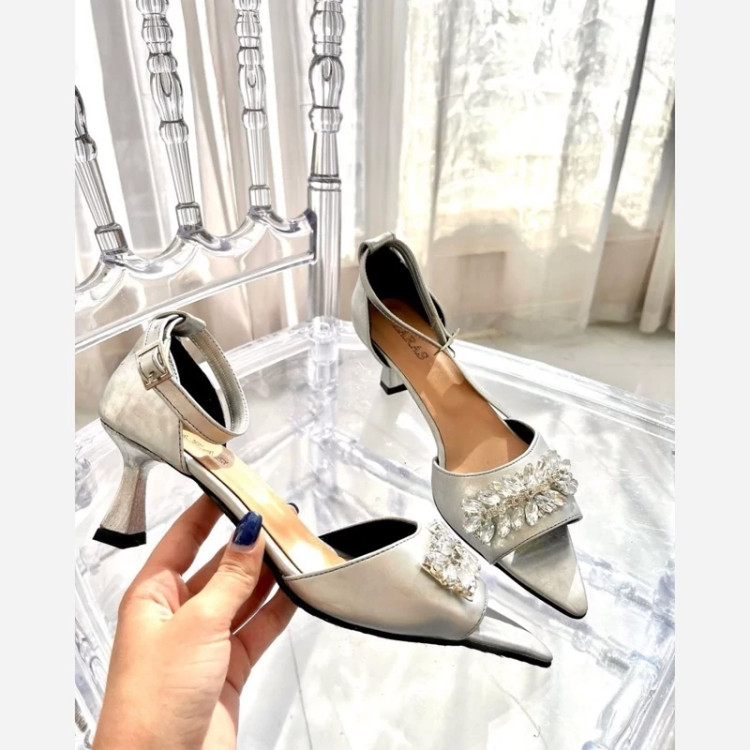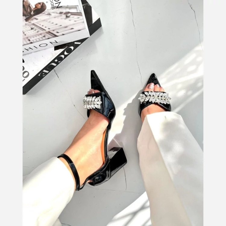 صندل مجلسی نگینی جدیدقالب نیم سایزبزرگ پاشنه 5و7 سانت پهن وباریک چرم بیاله وارداتی نگین ترک وارداتی دارای رنگبندی