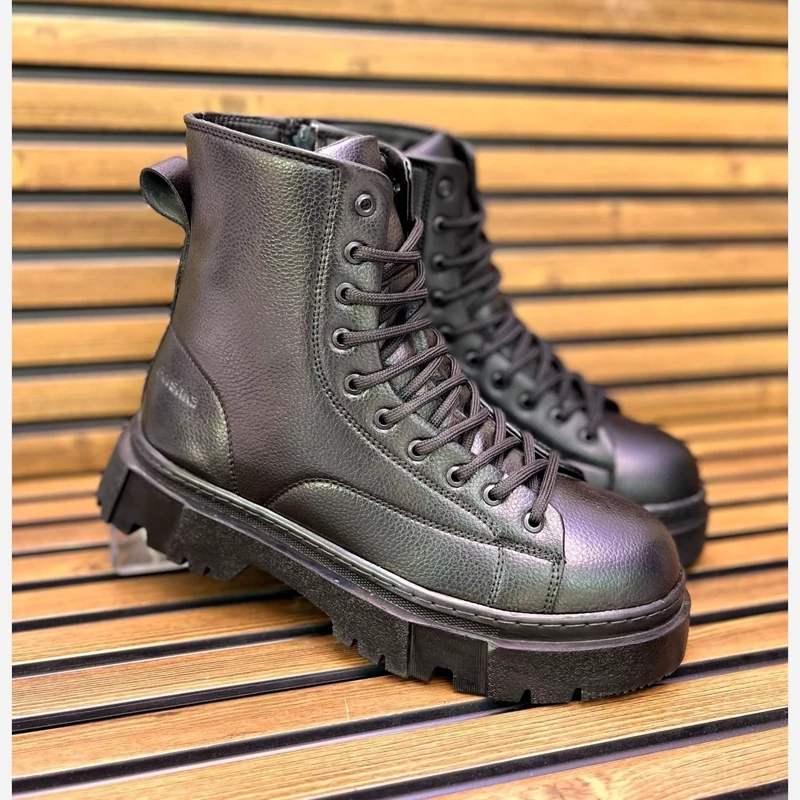 بوت برشکا بندی ، بغل زیپ چکمه ای چرم ماکرو طبیعی ضد تَرَک و پوسته شدن زیره تی پی یو فنر دار طبی اصل آستر و گلچه تُرک ضد بو و تعریق کفی طبی ساتل با روکش چرم طبیعی دور دوخت شرکتی و پرس پی یو سایز 40 تا 44